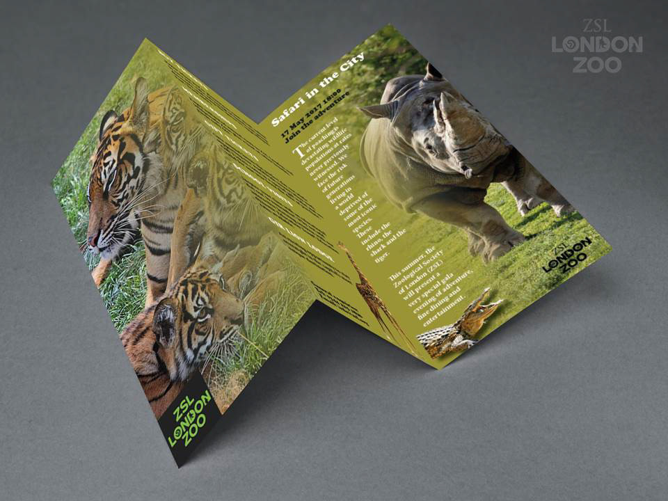 I kept strong vivid colours and in the front I added an invitation to "dare into the jungle" instead of just adding the Zoo title and logo with nothing more. For me Animals are intrinsically united to Nature, Flora and plants so I wanted my design to include a balanced mix of animal and plants images